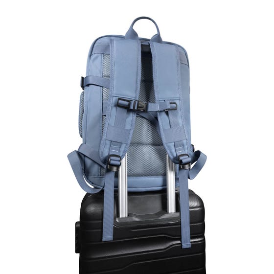 Mochila con amplios espacios diseñados para todas tus pertenencias personales. Esta mochila cuenta con un compartimento acolchado para laptop de hasta 16″. Su capacidad de almacenamiento se expande fácilmente para adaptarse a tus necesidades. Equipada con una agarradera superior y lateral lo que te ofrece trasladarla de manera versátil. Las asas acolchadas para llevar en la espalda garantizan comodidad durante todo el día, mientras que la conveniente salida USB te permite cargar tu dispositivo móvil sobre la marcha. Además, la banda en la parte posterior facilita su transporte en trolley.