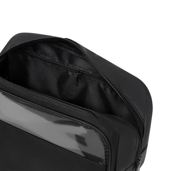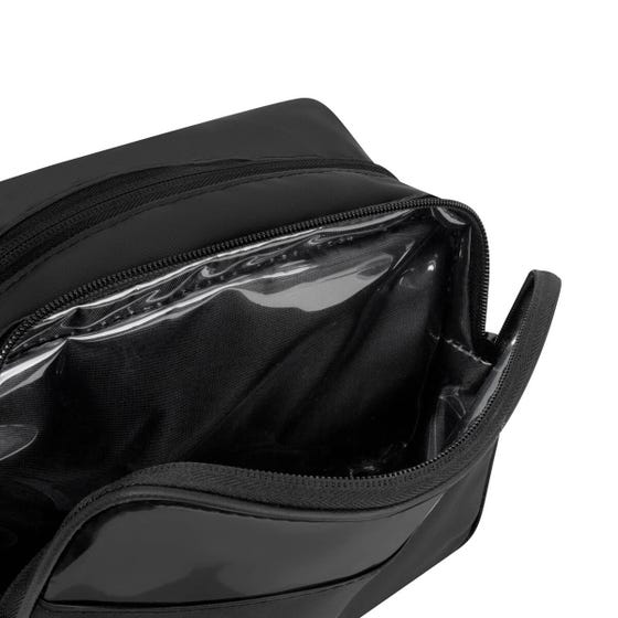 Neceser de poliéster resistente al agua. Incluye una mica PVC en el compartimento frontal para una fácil visualización de su contenido. Dos compartimentos amplios y múltiples bolsillos internos para mantener todo perfectamente ordenado. Su asa lateral facilita el transporte, mientras que los pullers de rubber aseguran un cierre cómodo y seguro. Ideal para viajes, gimnasio o uso diario.
