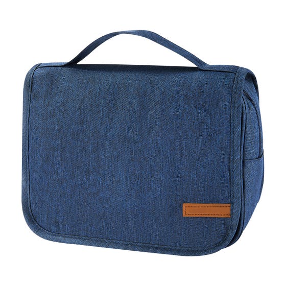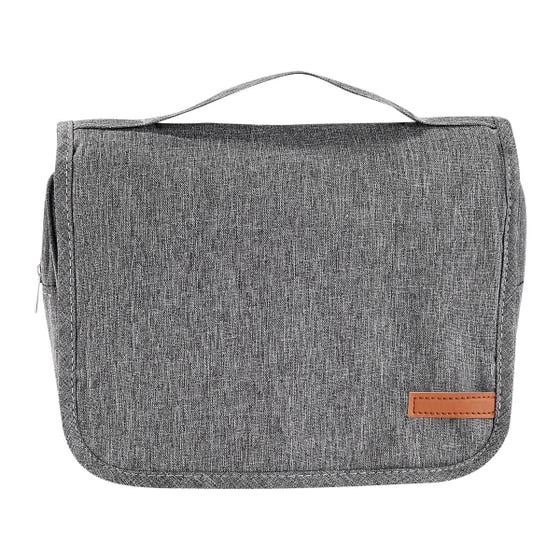 Organizador con cierre de velcro. Compartimento principal con cierre, elásticos internos, separadores de tela para una mejor organización de artículos personales y material de malla para su ventilación. Incluye bolsillo frontal con cierre, bolsillo superior impermeable, gancho de plástico para colgar, bolsillo en la parte posterior y asa superior.