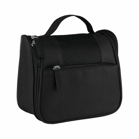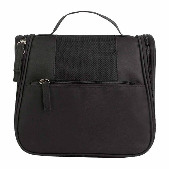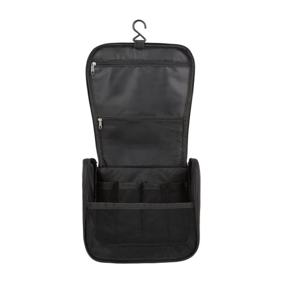 Organizador con bolsa con cierre y asa en el exterior. Incluye gancho, 2 compartimentos con cierre y 4 bolsas de malla en el interior.